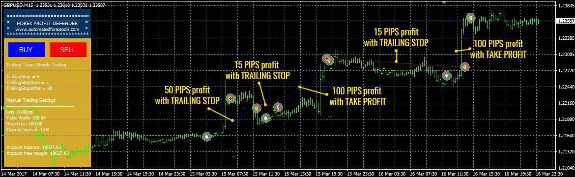 Forex Profit Defender is an advanced forex system for setting Trailing Stops to any open trade/position. Forex Profit Defender is not typical automated trading forex robot. It is designed to help forex traders which trade manually or use other forex robots which don't support Trailing Stops.